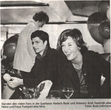 Hasiach (leh). Wer am Samstag bei der Haslacher Sparkasse beim Geldautomaten Bares abheben wollte, stieß dort auf nicht alltägliche Schwierigkeiten: Hunderte vor allem weibliche Teenager verstopften im Elngangsbereich den Zugang. Der Grund für den Ansturm auf die Sparkasse war eine Interview-und Autogrammstunde zweier Darsteller der ARD-Vorabendserie »Verbotene Liebe«: Andi Slawinski alias Heino und Freya Trampert alias Nina hatten sich angekündigt.